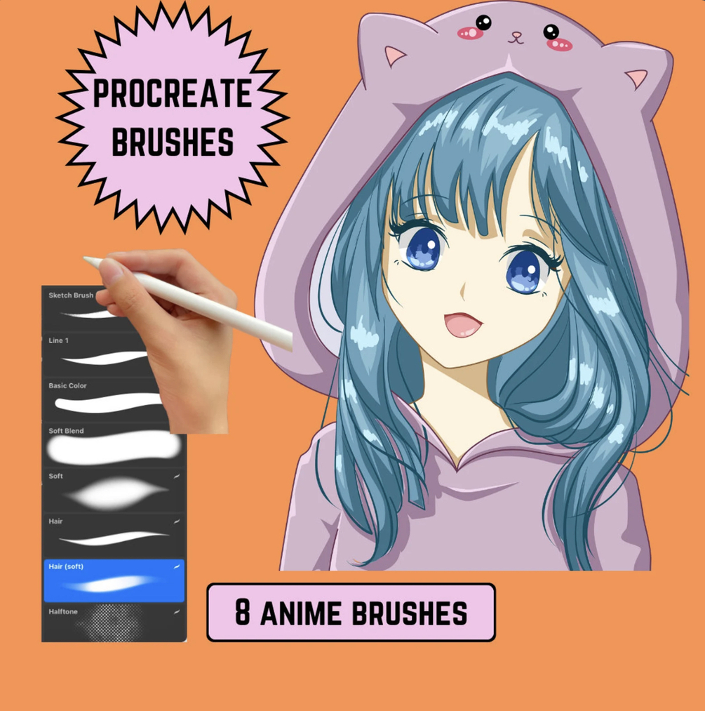Anime Style Procreate Brushes is a comprehensive brush set designed specifically for creating anime-style artwork on Procreate. This collection includes a total of 8 brushes, each carefully crafted to enhance the creative process for artists and illustrators. The set features a range of sketching brushes that provide a variety of line weights and textures, perfect for laying down initial concepts and outlines. It also includes a selection of inkers, ideal for defining crisp, clean lines that are characteristic of anime art.